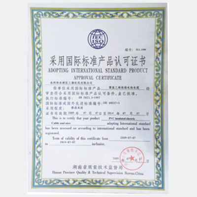 采用國際標準產(chǎn)品認可證書(shū)